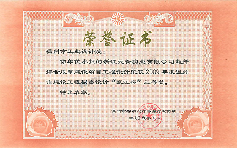 浙江元新實(shí)業(yè)有限公司超纖維合成革建設(shè)項(xiàng)目工程設(shè)計(jì) 甌江杯三等獎(jiǎng)