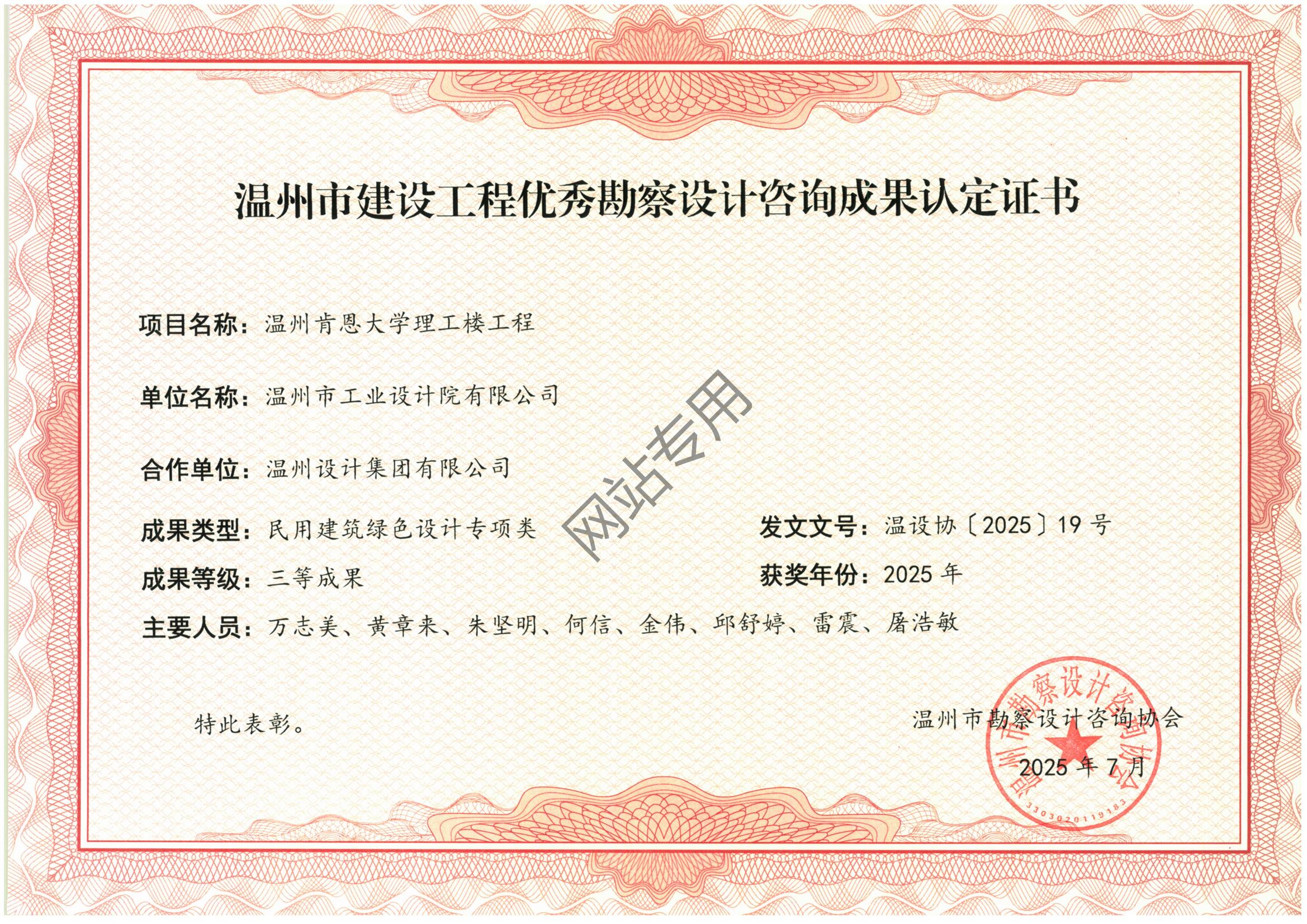 溫州肯恩大學(xué)理工樓工程 2025年度“甌江杯”民用建筑綠色設(shè)計(jì)專項(xiàng)類三等