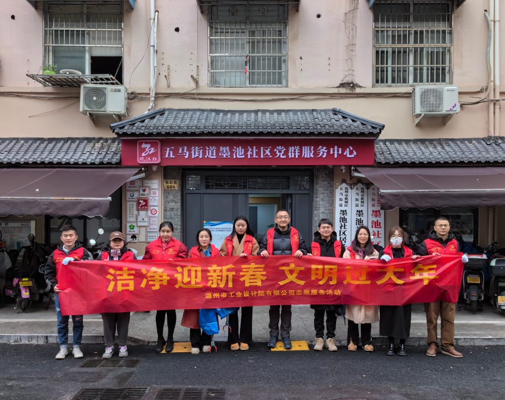 随着2024年新春佳节即将来临之际,为了营造一个整洁、文明、和谐的生活环境,提升城市形象,全面助力“强城行动”,2月4日下午,集团工业院组织党员干部和团员青年共10余人,前往五马街道墨池社区开展“洁净迎新春·文明过大年”社区志愿服务活动。帮助所在老旧小区“掸新”,为过一个洁净、文明、祥和的春节尽一份力。...