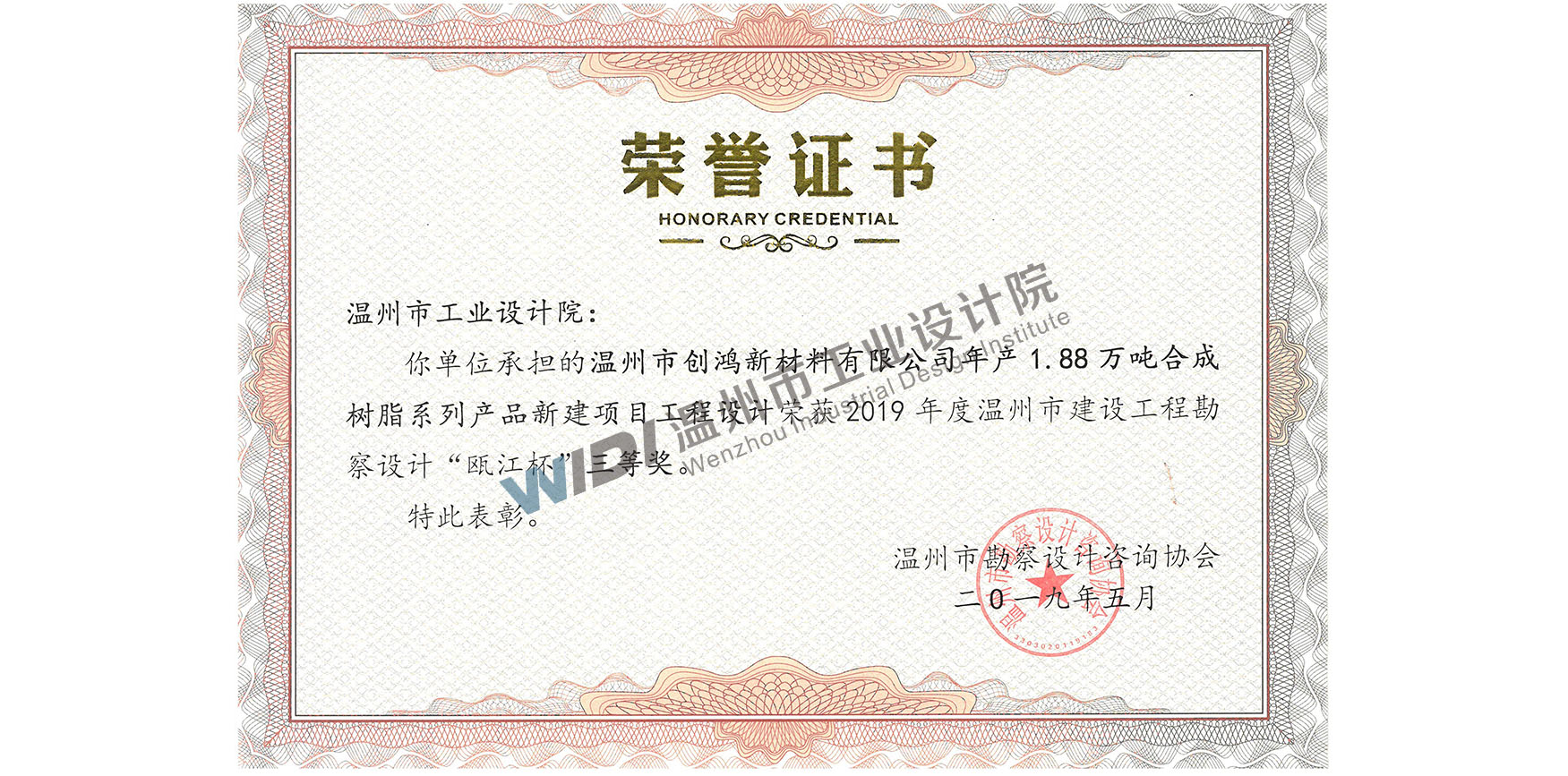 溫州市創(chuàng)鴻新材料有限公司年產(chǎn)1.88萬噸合成樹脂系列產(chǎn)品新建項(xiàng)目工程